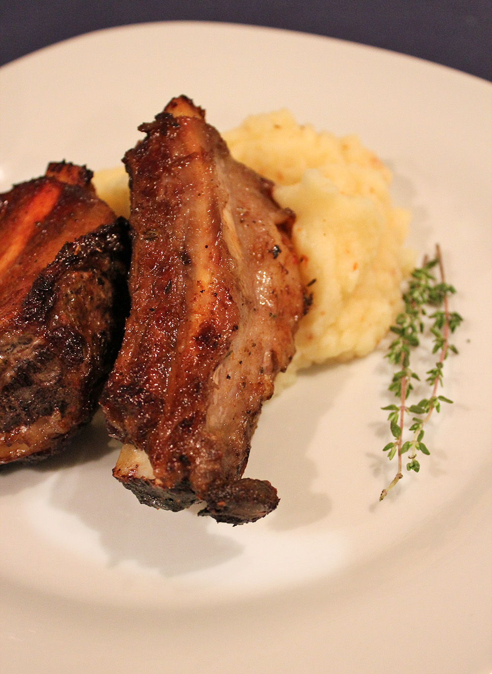- Finalmente servimos un poco de puré y encima un trozo del costillar.