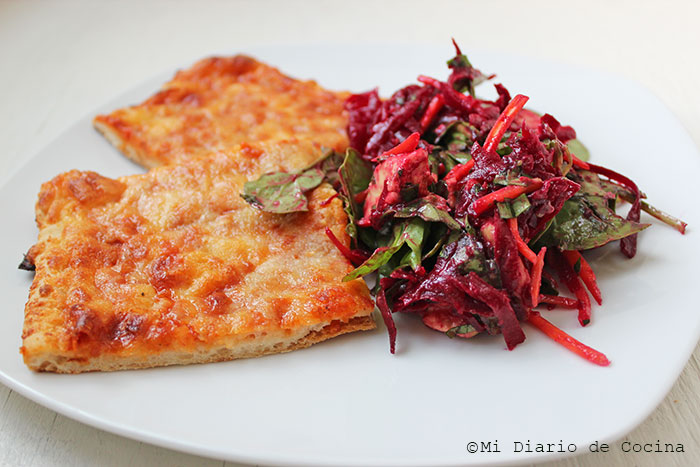 Ensalada de remolacha, zanahoria y espinaca con Pizza Freschetta