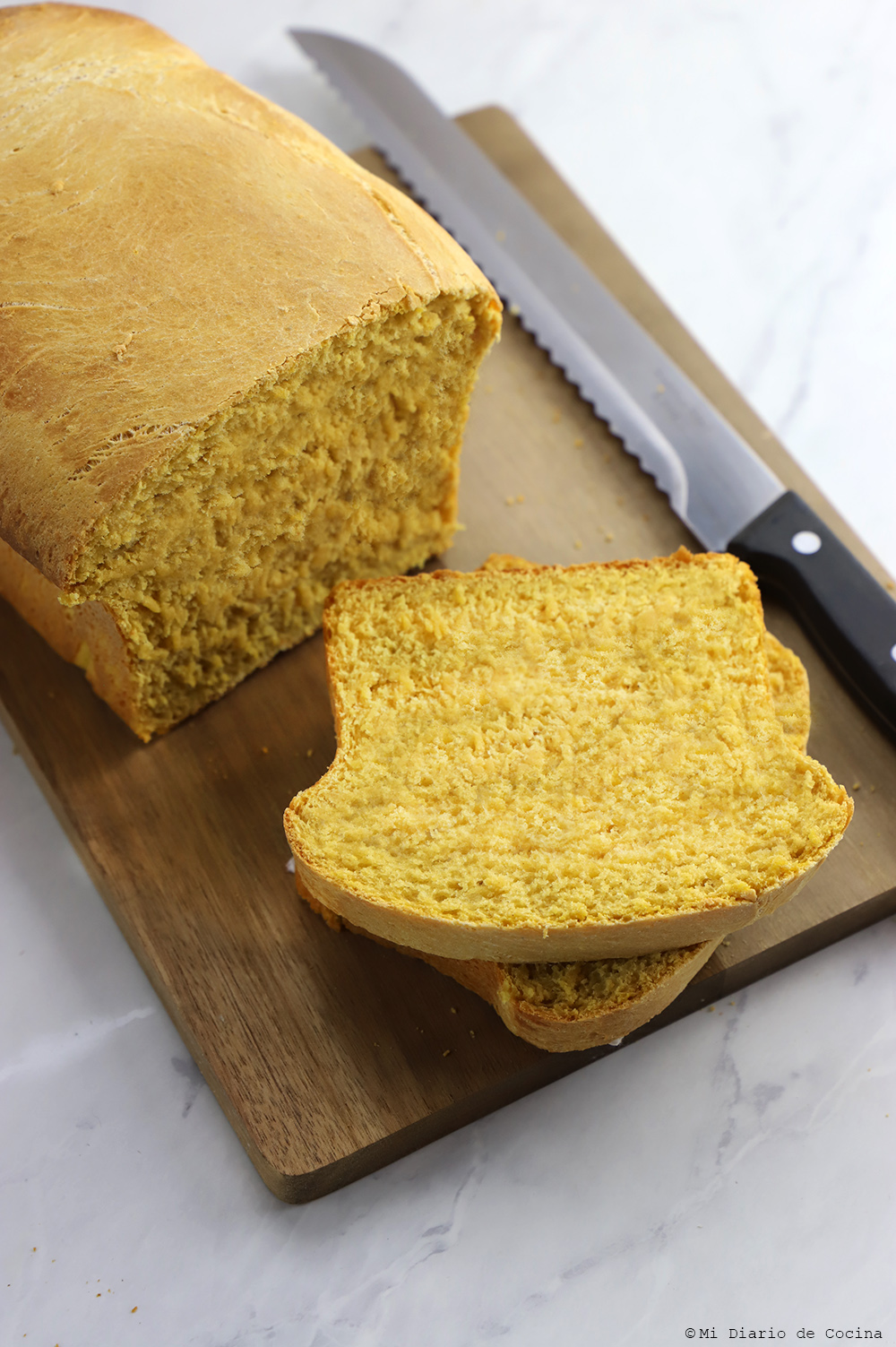 Una vez hecho el pan, les recomiendo dejarlo reposar unos minutos antes de cortarlo, para que el pan tome la textura mรกs firme una vez sacado del horno y sea mรกs fรกcil cortarlo.