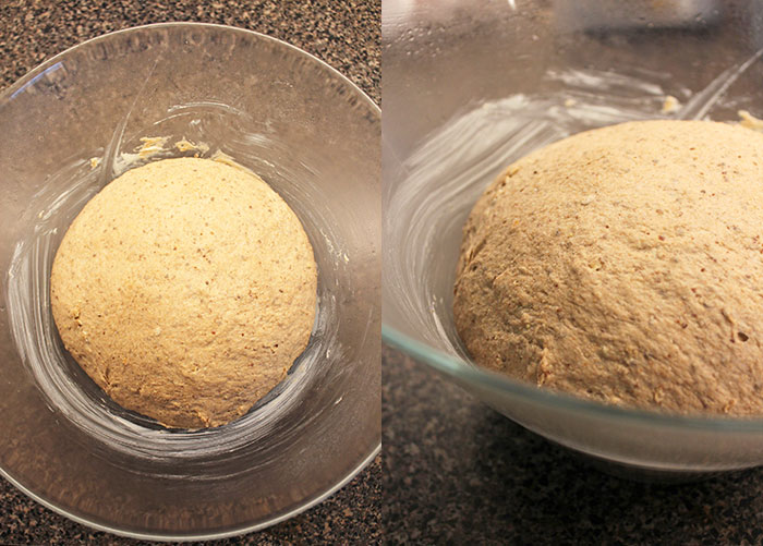 - Una vez lista colocarla en un bowl enmantequillado y dejar reposar la masa tapado con alusa plรกstico o con un paรฑo durante toda la noche o por lo menos unas 8 horas.