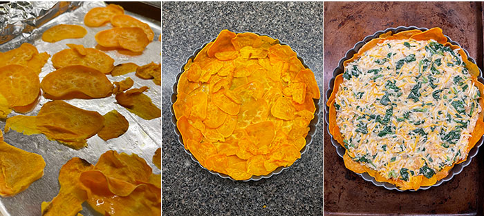 Sobre la receta que les traigo hoy es un maravilloso Quiche de papa camote y espinacas, una manera muy diferente de disfrutar el quiche, ya que usualmente tenemos una base hecha principalmente de harina, mantequilla, agua y sal. Pero esta vez les presento una base hecha con papa camote. Un ingrediente lleno de propiedades nutricionales.