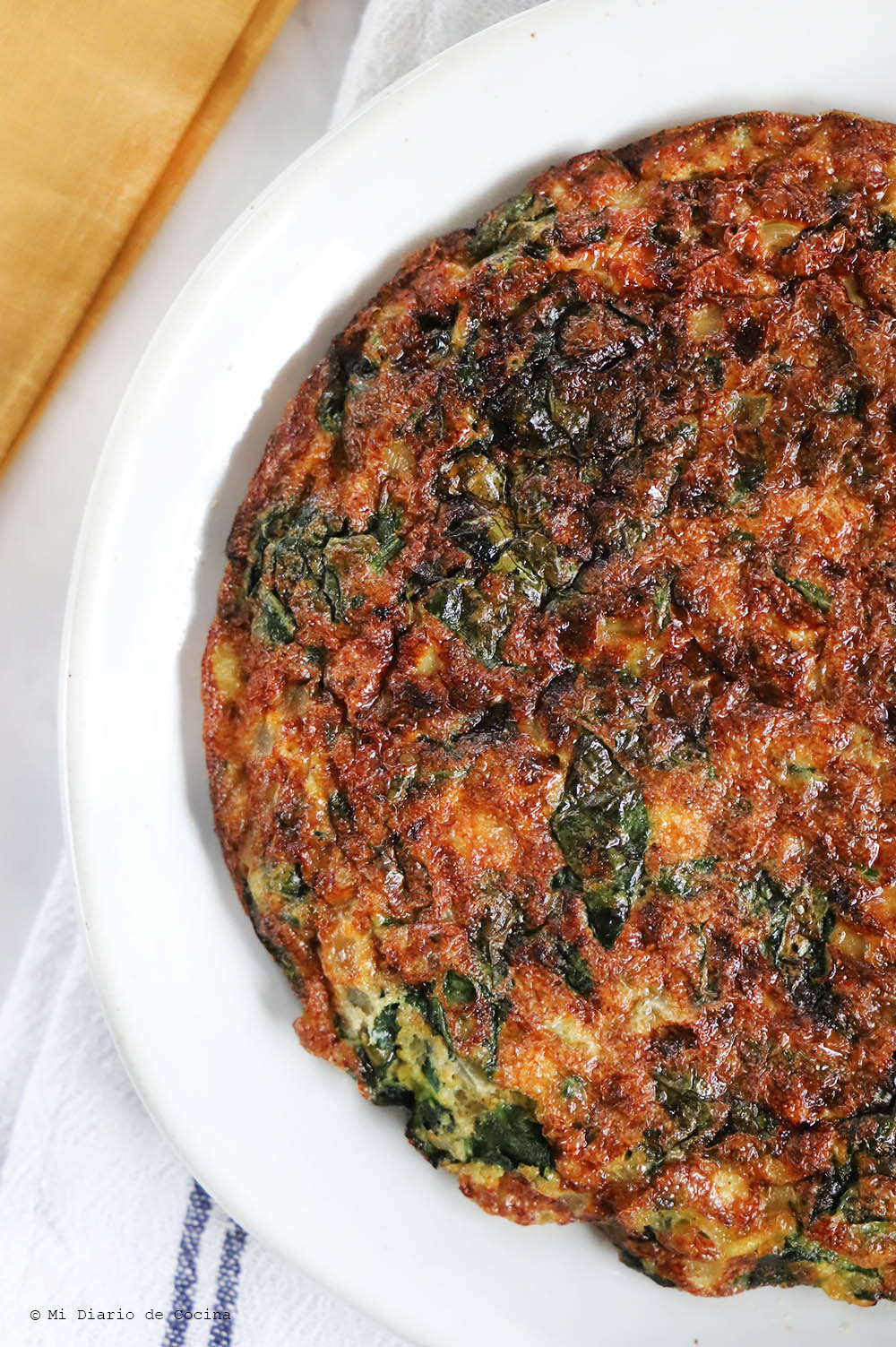 Esta tortilla de espinacas es mi salvadora, la hago super seguido, realmente se la recomiento por lo rรกpida y deliciosa. Es un acompaรฑamiento sencillo y lo bueno que pueden ir agregando otros vegetales que sean de su gusto para darle un toque personal.ย Servida caliente o a temperatura ambiente, es ideal como tapa, en un picnic o incluso como parte de un brunch.
